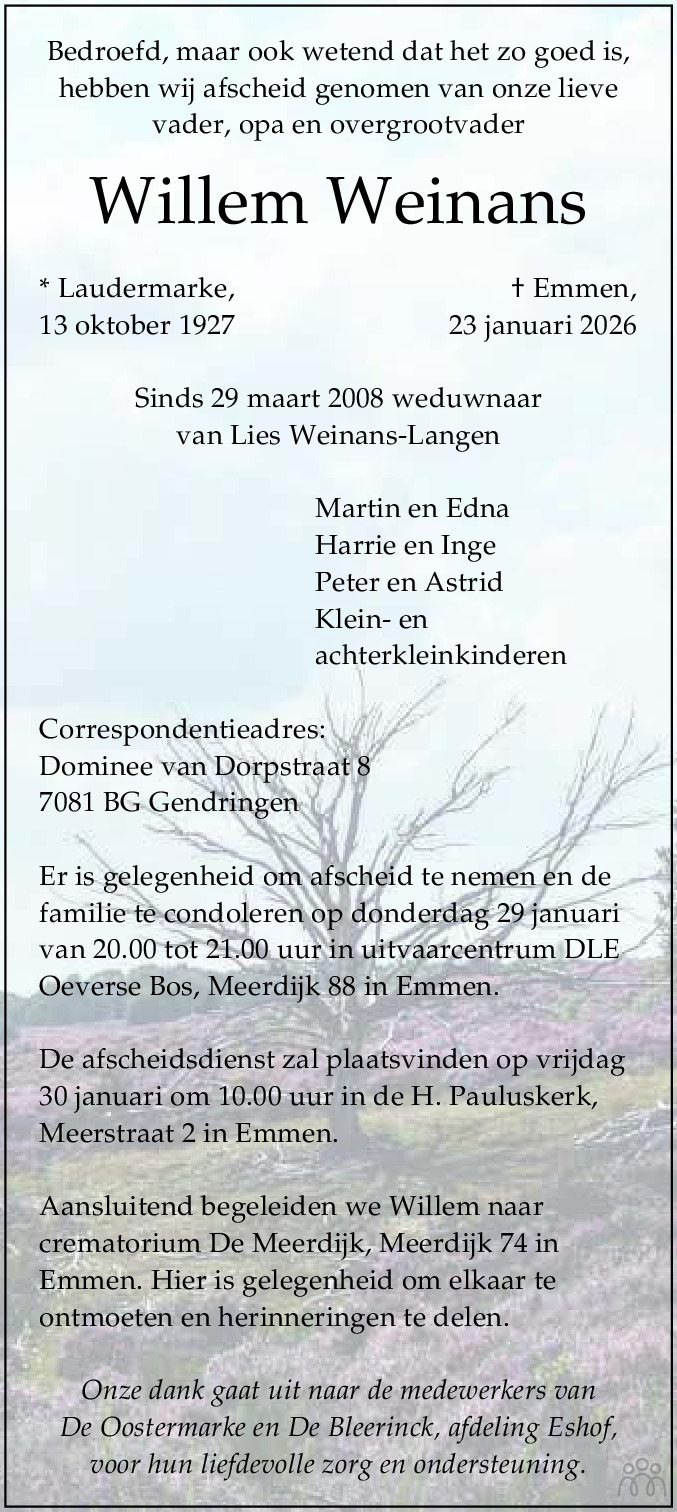 Laudermarke op 13 oktober 1927 •Emmen op 23 januari 2026