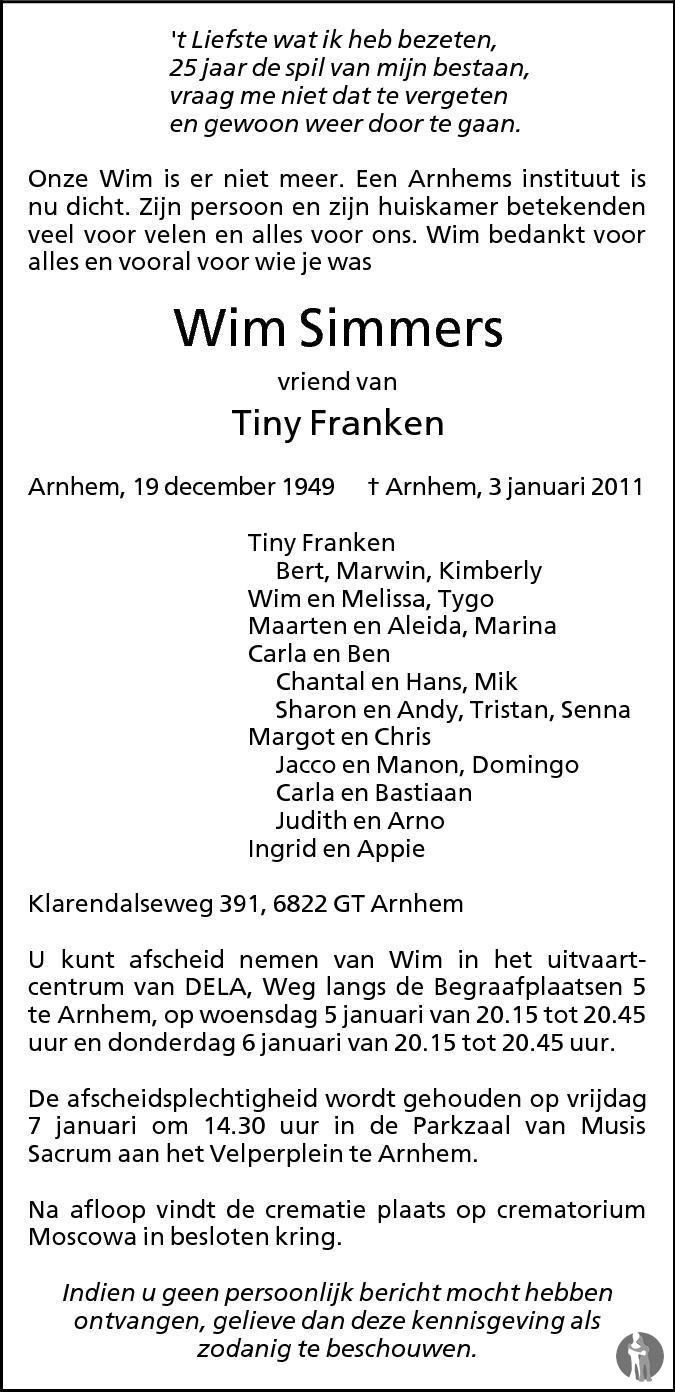 Markante persoonlijkheid met onnoemelijk veel liefde voor zijn vak. Als je gezelligheid in een schaal van 1 tot 100 zou moeten indelen, scoorde Wim vast en zeker 110 "op de schaal van Simmers".